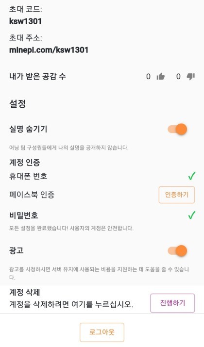 6. 초대코드 " ksw1301 " 입력