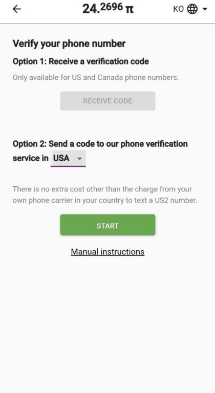 8. 파이코인 채굴방법 - 이제 마지막 단계 핸드폰 혹은 페이스북 인증을 진행입니다.
